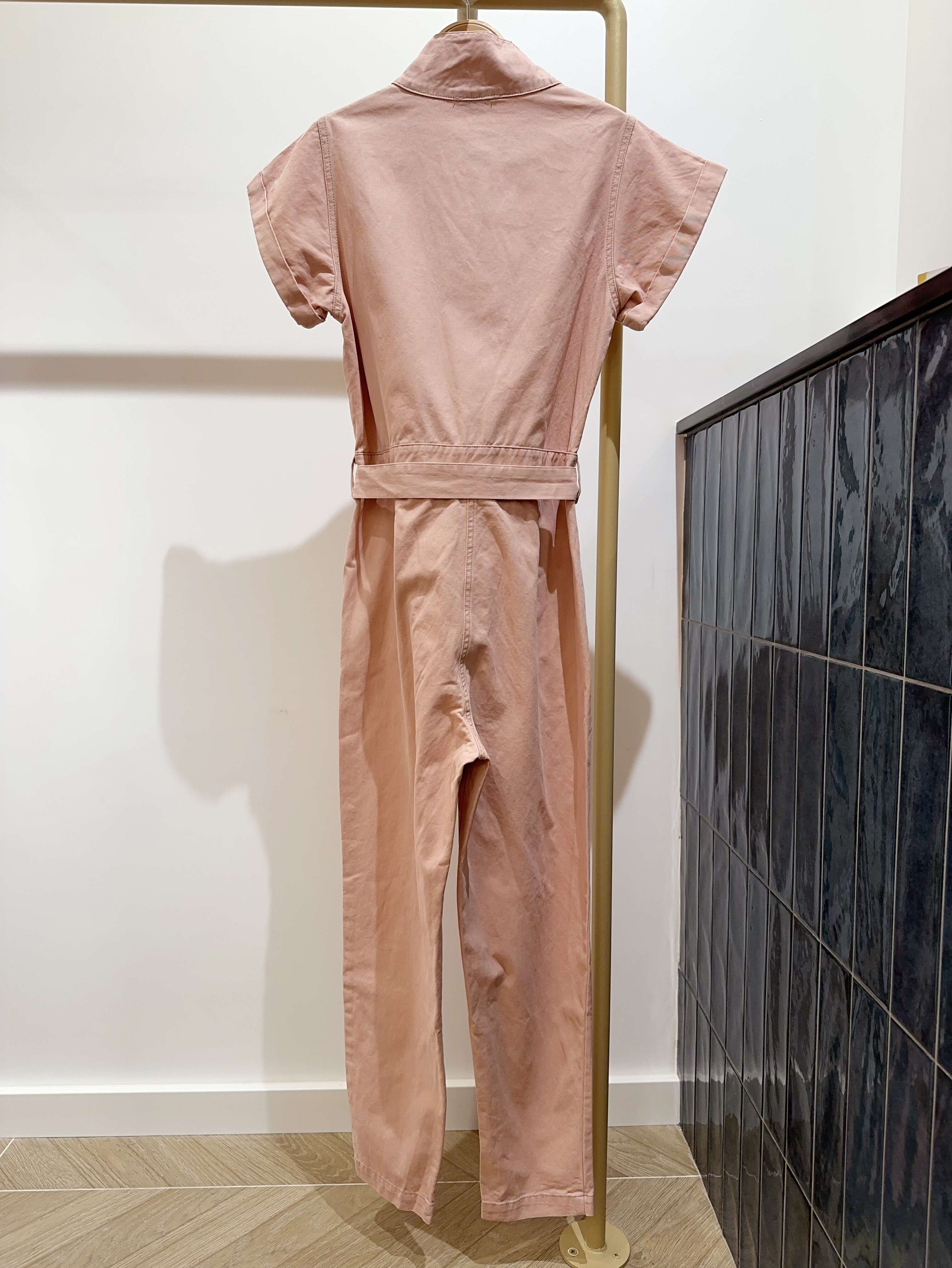 - Cechy: Pasek w talii, praktyczne kieszenie, krótki rękaw
