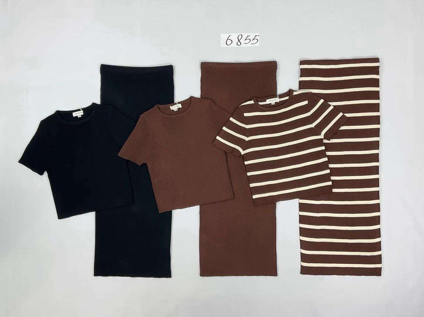Odkryj definicję nowoczesnej elegancji i niezrównanego komfortu z naszym najnowszym zestawem. Komplet lLISAYA to propozycja dla kobiet, które cenią wyrafinowany styl idący w parze z wygodą. Wykonany z najwyższej jakości, niesamowicie miękkiej dzianiny o modnej, prążkowanej strukturze, doskonale dopasowuje się do sylwetki, subtelnie podkreślając jej atuty. Składający się z dopasowanego, krótkiego topu z krótkim rękawem oraz ołówkowej spódnicy maxi z wysokim stanem, tworzy spójny i niezwykle kobiecy total look.