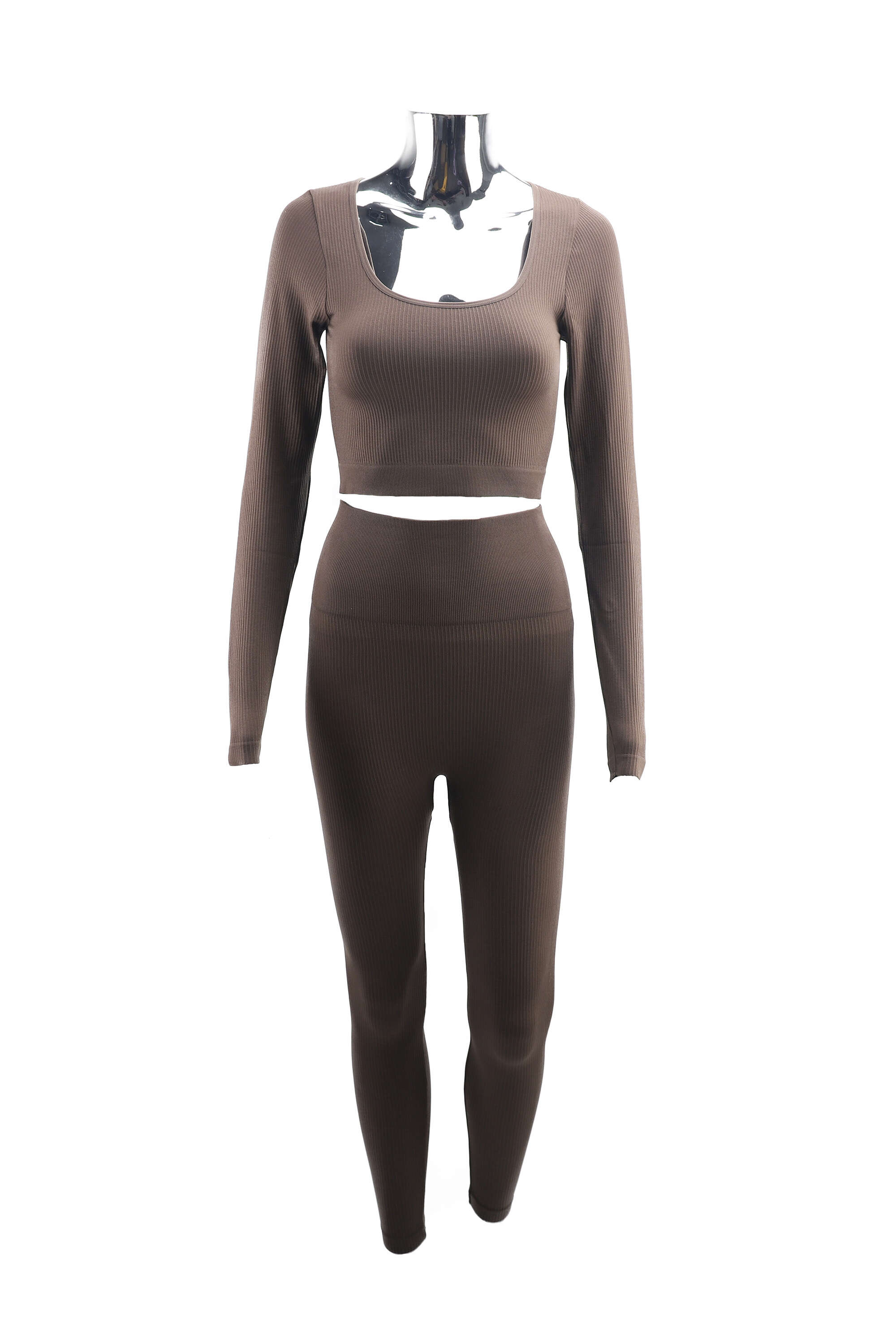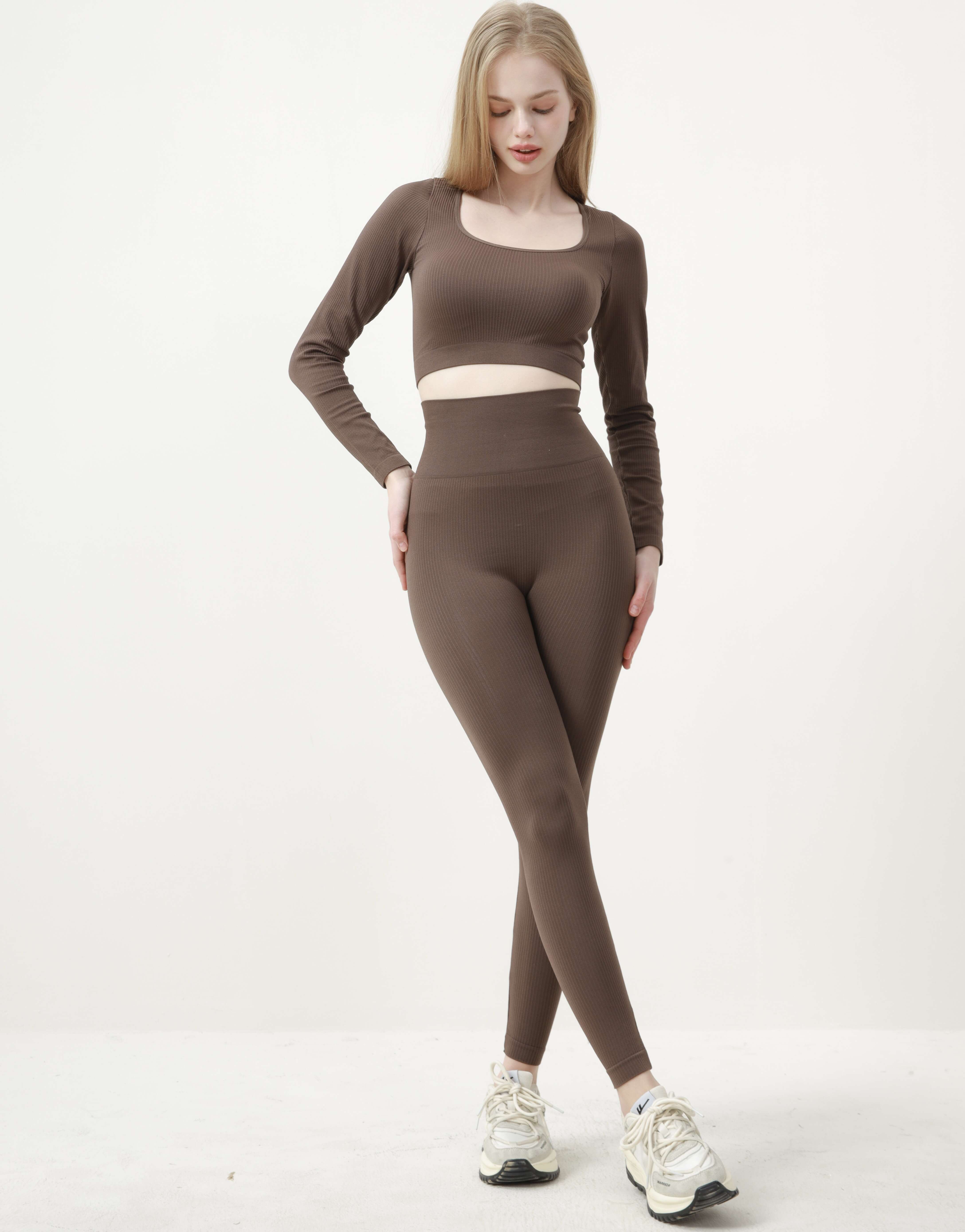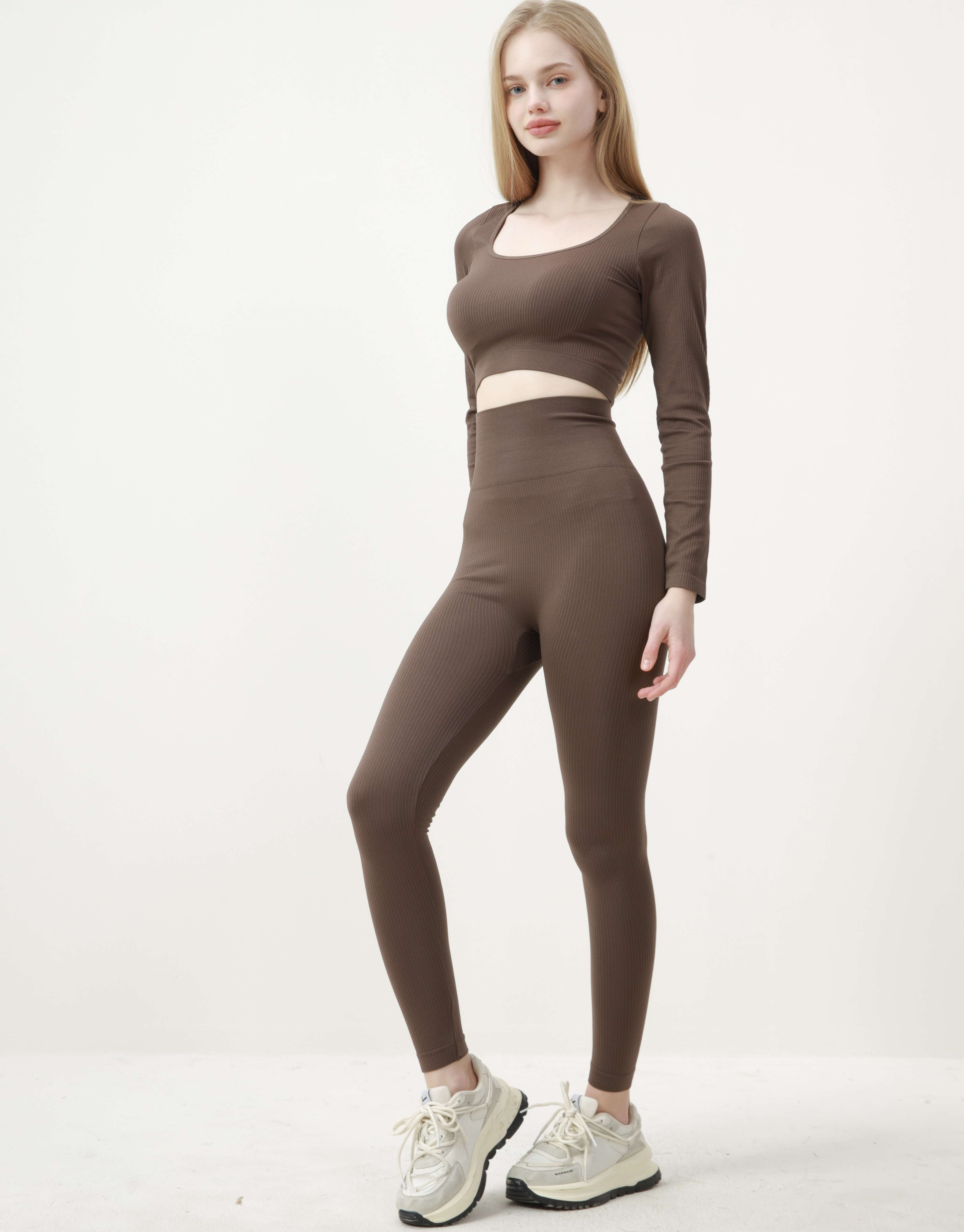 W skład zestawu wchodzi minimalistyczny top z długim rękawem oraz legginsy z wysokim stanem, które perfekcyjnie modelują i podkreślają sylwetkę, zapewniając jednocześnie pełną swobodę ruchów. To idealny wybór zarówno na poranny trening, relaksujący spacer, jak i stylowy domowy relaks. Wysoka jakość wykonania oraz dbałość o detale gwarantują trwałość i niezmienny komfort noszenia przez długi czas.