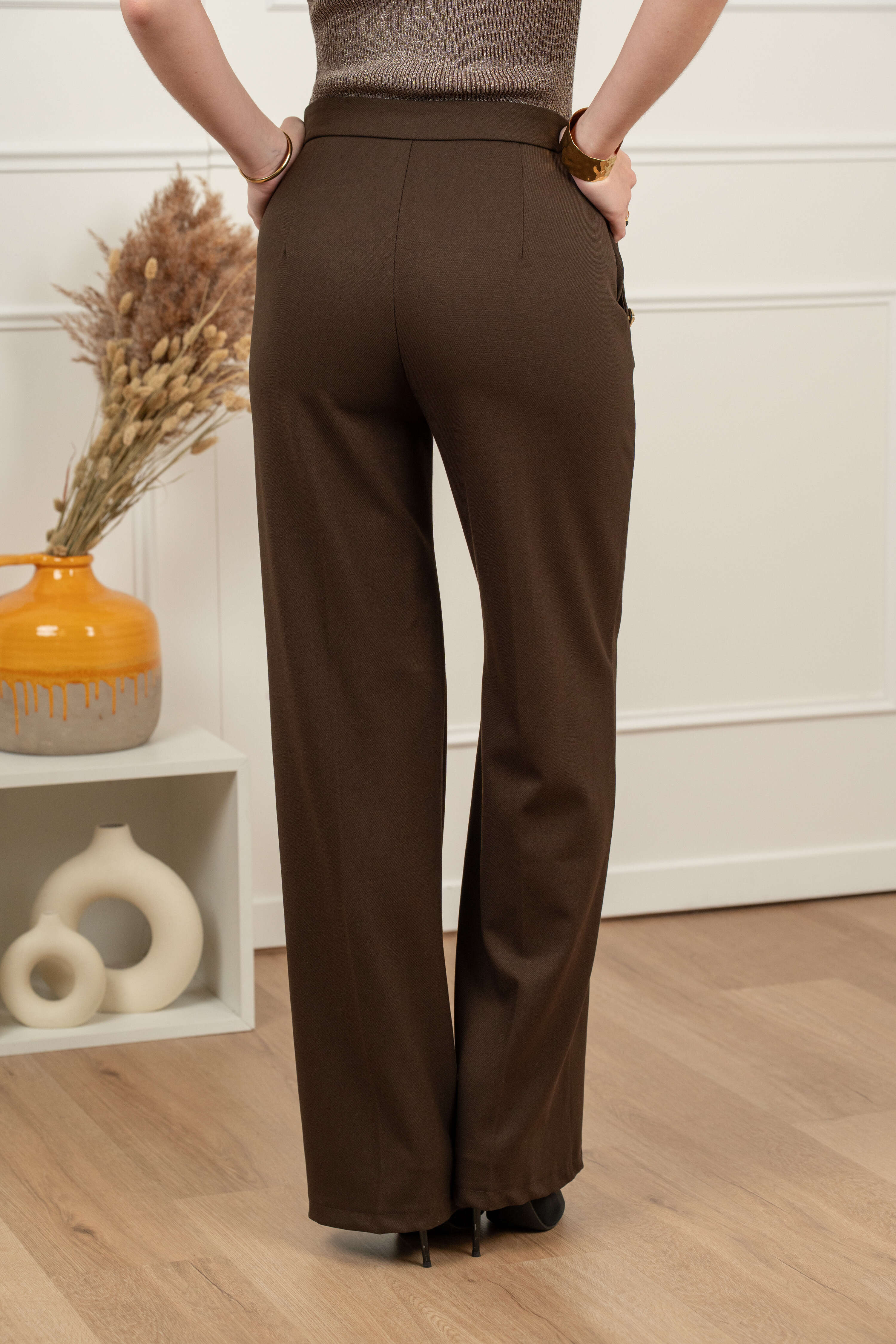 Odkryj kwintesencję elegancji i nowoczesnego szyku z naszym najnowszym modelem. Spodnie IBERIA to mistrzowskie połączenie klasycznego krawiectwa z najgorętszymi trendami sezonu. Wyróżniają się one wyrafinowanym krojem z wysokim stanem, który perfekcyjnie podkreśla talię, oraz szerokimi nogawkami, optycznie wysmuklającymi i wydłużającymi sylwetkę. Subtelny blask misternie zdobionych złotych guzików dodaje całości luksusowego charakteru, czyniąc ten model biżuteryjnym akcentem Twojej garderoby.