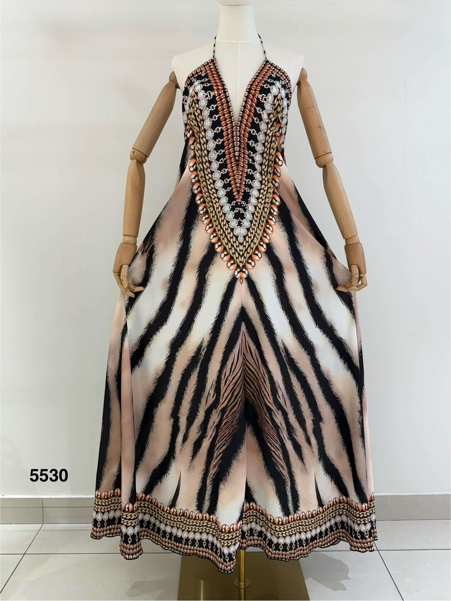 - Fason: Zwiewna sukienka maxi z głębokim dekoltem