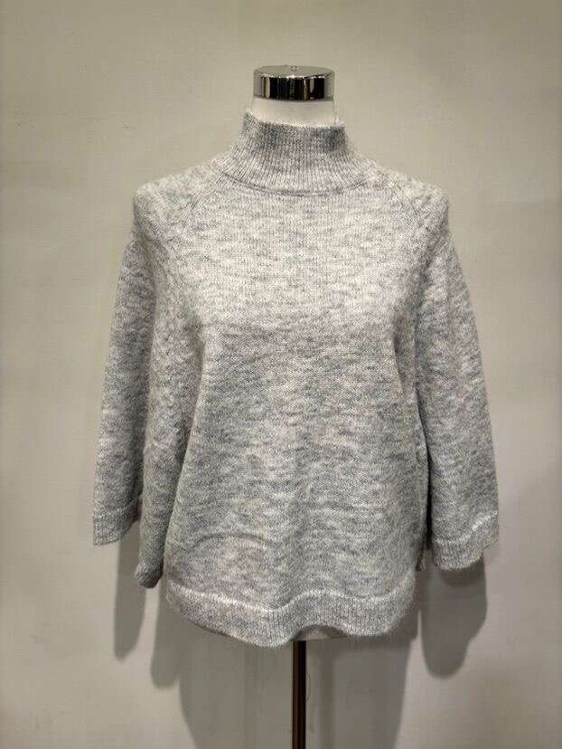 - Fason: Luźny, prosty krój z półgolfem i szerokimi rękawami.