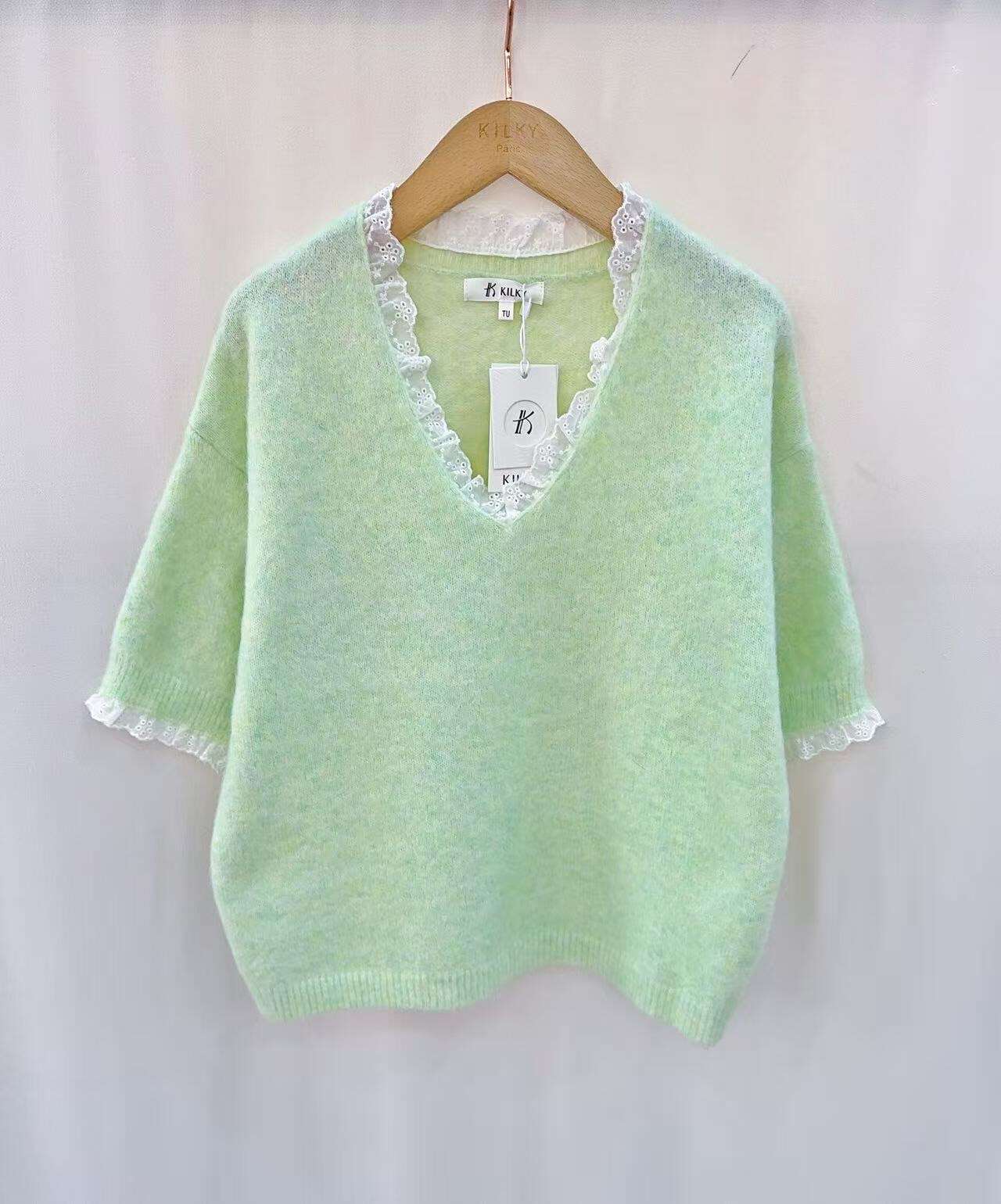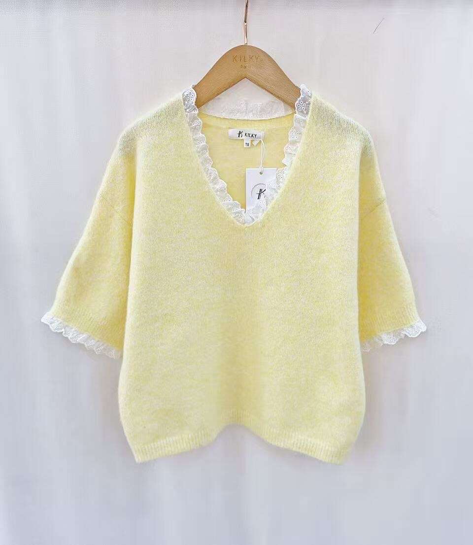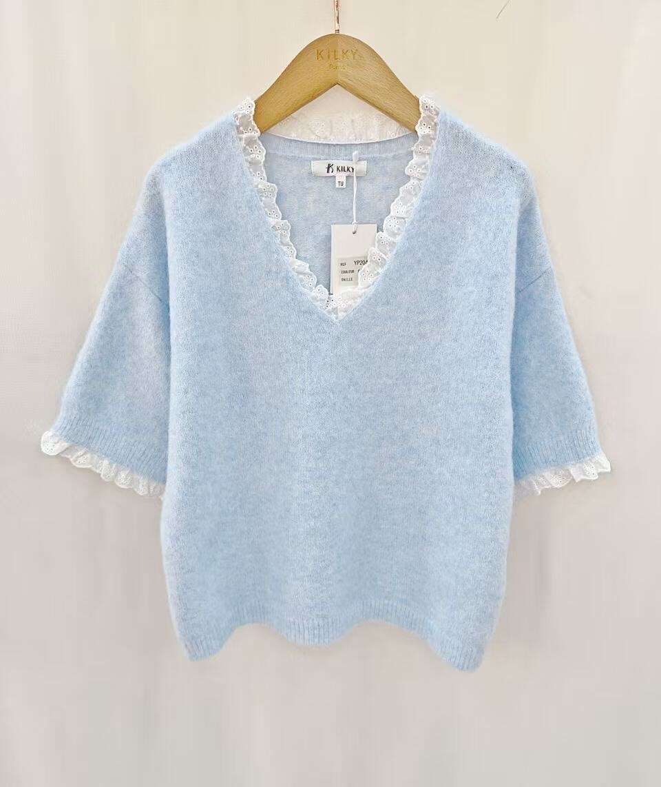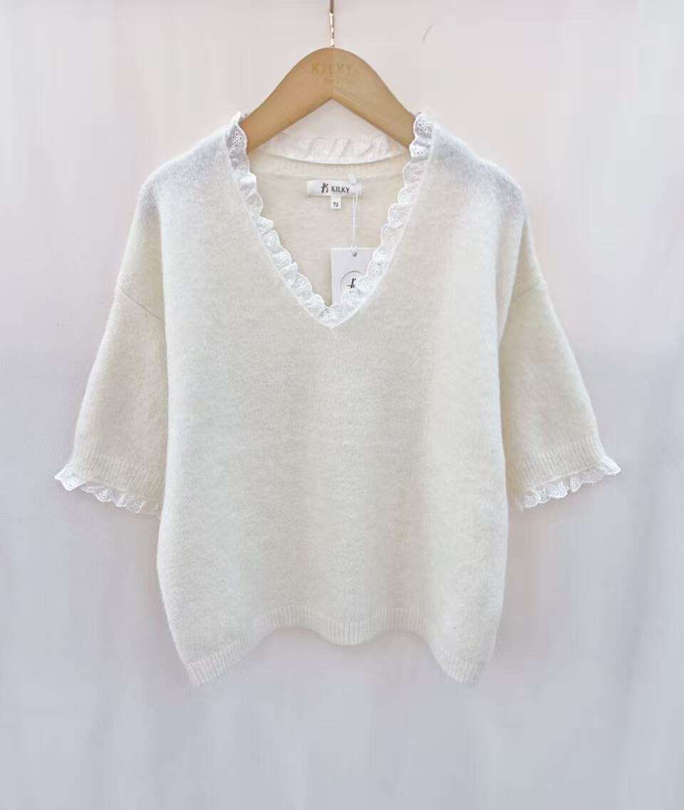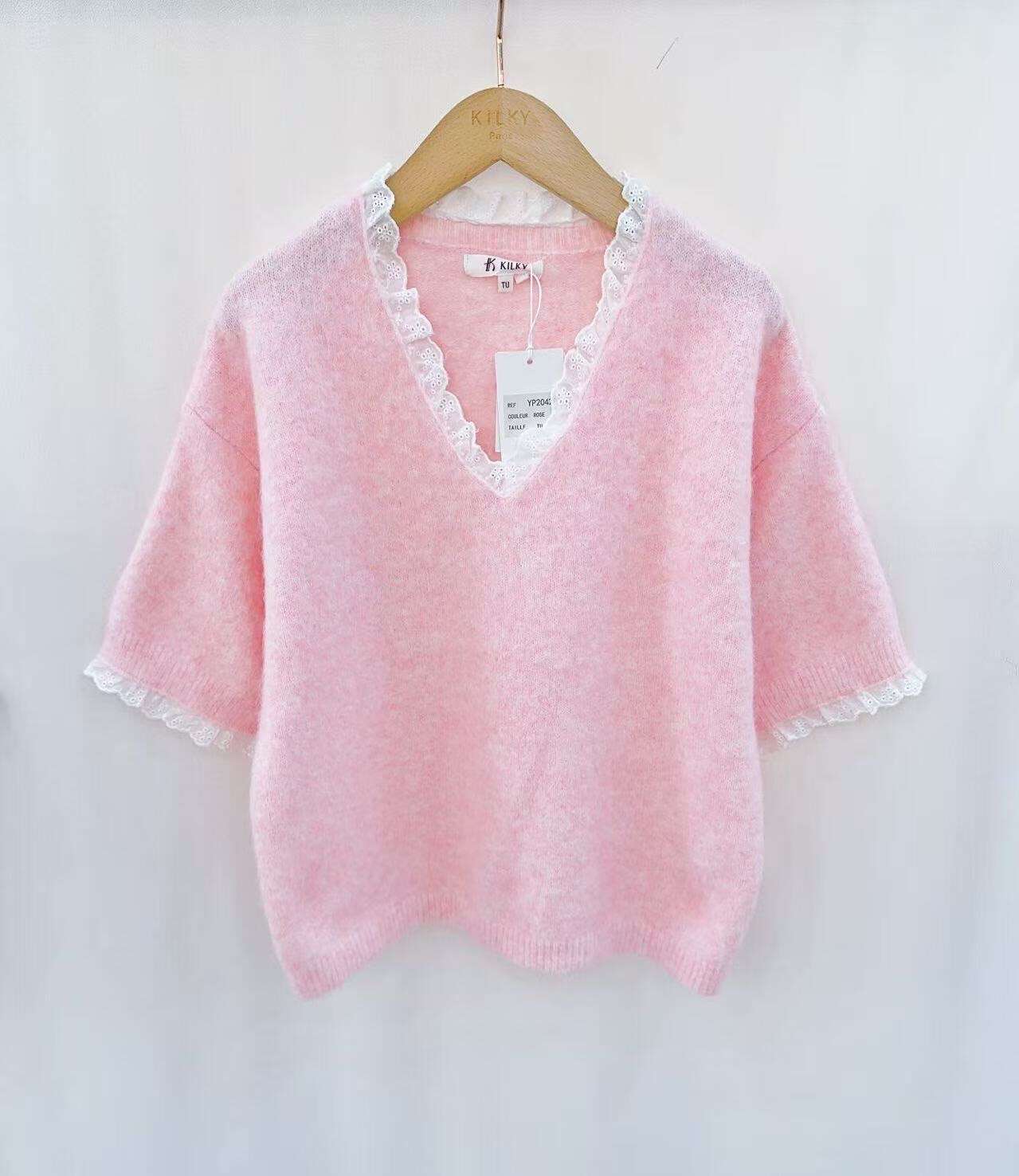Odkryj subtelny urok i niezrównany komfort, jaki oferuje luksusowy Sweter ILIANA. Ten model o luźnym kroju, wykonany z niezwykle miękkiej i przyjemnej dla skóry dzianiny, to kwintesencja nowoczesnej kobiecości. Delikatna, kunsztowna koronka zdobiąca dekolt w serek oraz krótkie rękawy nadaje mu wyrafinowanego charakteru, czyniąc go idealnym wyborem dla kobiet ceniących elegancję w codziennym wydaniu.