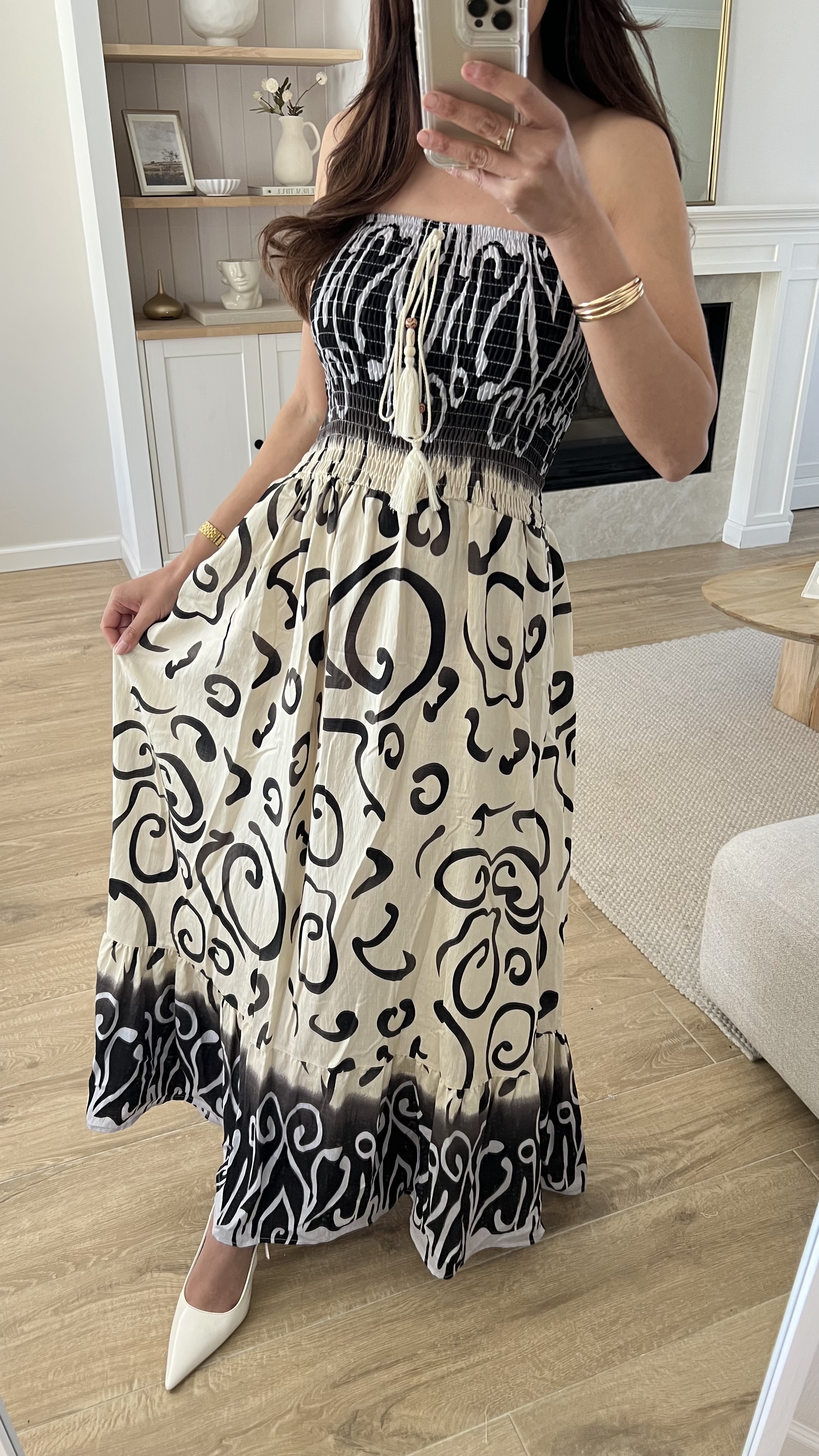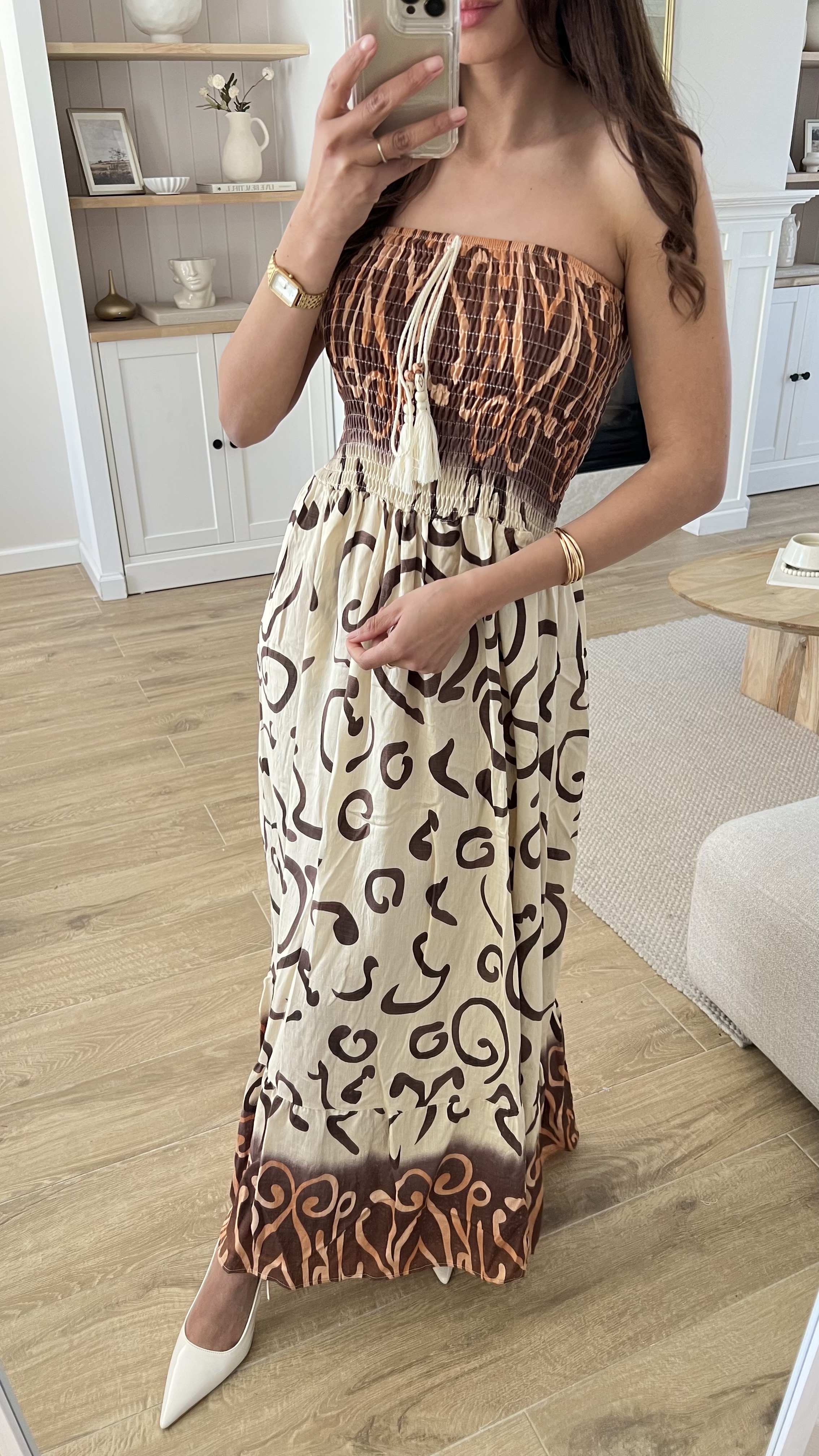 Sukienka HORIZON to propozycja idealna dla kobiet ceniących wygodę i oryginalność. Dostępna w trzech wyjątkowych kolorach: niebieskim, czekoladowym oraz czarnym, dzięki czemu łatwo dopasować ją do każdej okazji i stylizacji. Wysokiej jakości, przewiewny materiał sprawia, że sukienka świetnie sprawdzi się zarówno latem, jak i podczas eleganckich wyjść. Gumka w pasie gwarantuje idealne dopasowanie do każdej sylwetki, a intrygujący wzór nadaje jej niepowtarzalnego charakteru. To must-have w ofercie każdej hurtowni odzieży damskiej – świetny wybór zarówno do butików z modą miejską, jak i kurortowych kolekcji letnich.